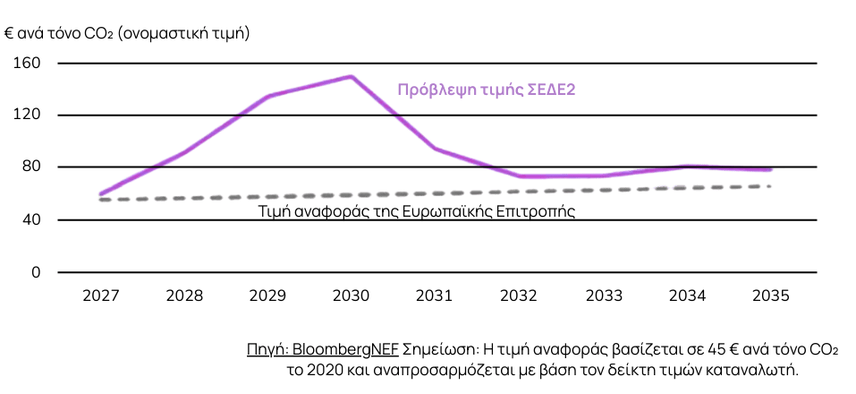 Αυτοί οι έλεγχοι των τιμών θα ισχύουν έως το 2029, οπότε η Ευρωπαϊκή Επιτροπή θα πρέπει να υποβάλει έκθεση σχετικά με τη λειτουργία τους και θα μπορεί να προτείνει την παράταση και επέκταση των ελέγχων των τιμών μετά την αναθεώρησή τους, εάν χρειαστεί. Το 2028, η Ευρωπαϊκή Επιτροπή πρέπει να επανεξετάσει τη λειτουργία του ΣΕΔΕ2 για να διασφαλίσει την ορθή λειτουργία της αγοράς και τη σταθερότητα των τιμών. Ο χρόνος αυτός είναι σημαντικός, καθώς πολλά από τα μοντέλα πρόβλεψης των τιμών ΣΕΔΕ2, συμπεριλαμβανομένου του μοντέλου της BloombergNEF που παρουσιάζεται παρακάτω, δείχνουν αύξηση των τιμών έως το 2030, η οποία μπορεί να αντιμετωπιστεί με αυτή τη διαδικασία επανεξέτασης το 2028, εάν χρειαστεί, ανάλογα με τις προοπτικές μετά την έναρξη λειτουργίας της αγοράς.